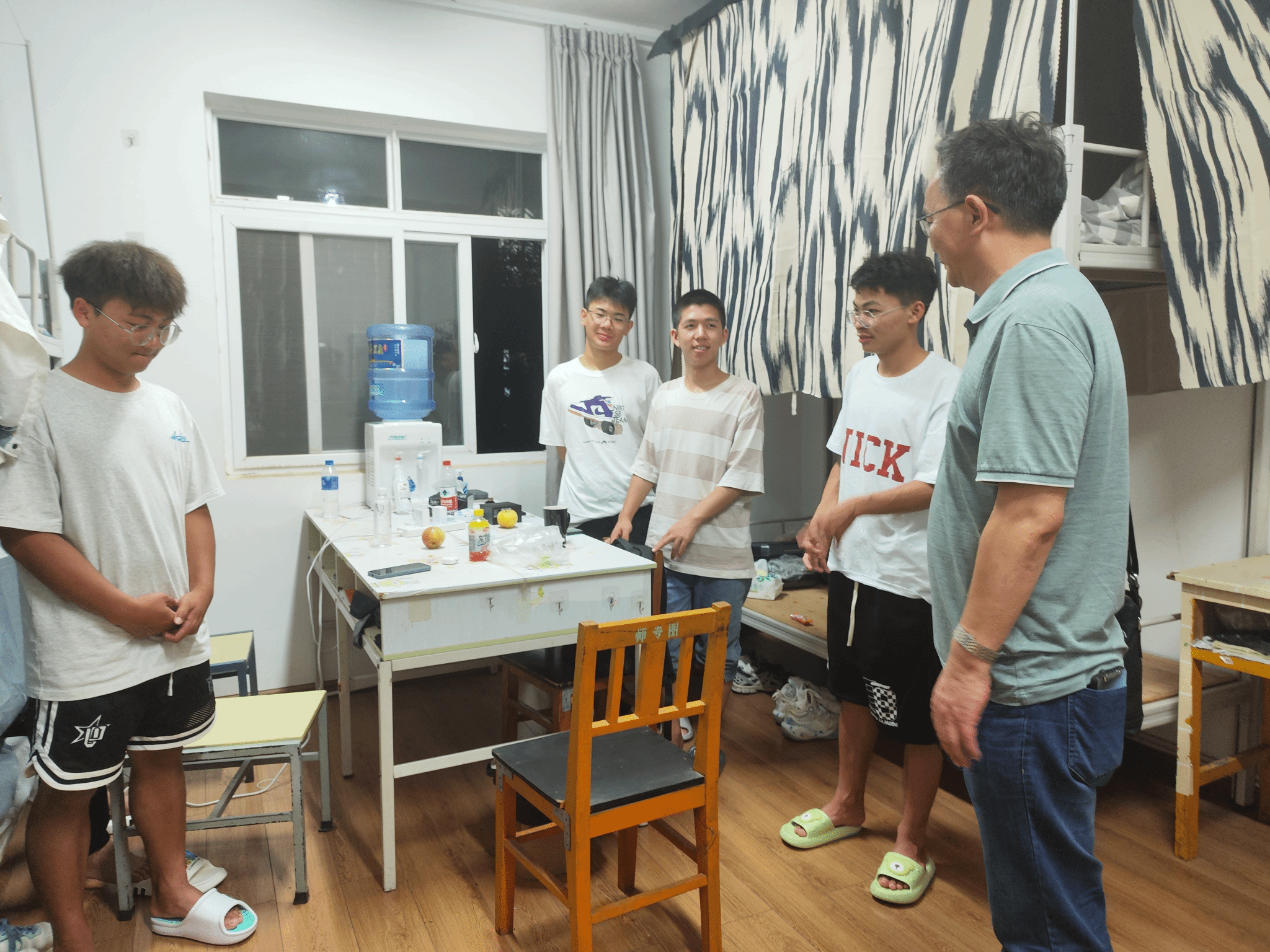 为深入了解新生到校后的适应情况,推进数理学院学生工作走深走实。8月30日新生报到当天晚上,学院党委书记刘飞、院长李周红、副院长杨春艳及学院陈亦佳和李智清老师深入学生宿舍走访慰问,为同学们送上关心和问候。