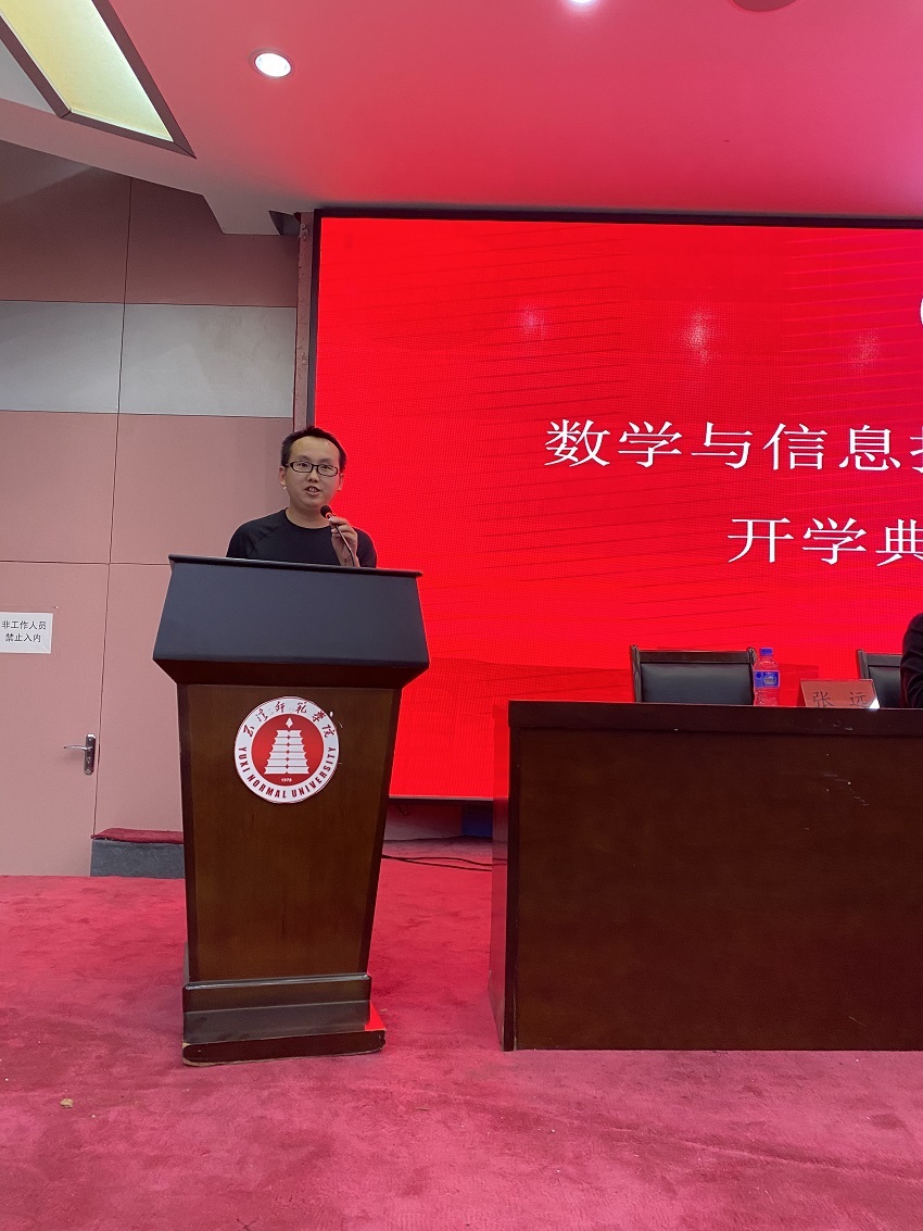 教师代表张远从个人学习经历出发,与同学们分享在学院就读时感受到的人文情怀。并从师长与学长的角度对同学们提出无限期望。他希望全体新同学要有“以天下为己任”的情怀,具备刻苦勤奋的学习精神,珍惜在校园的每一刻,不彷徨、不虚度、不荒废,不负韶华,在玉溪师范学院度过人生中最美好的时光。