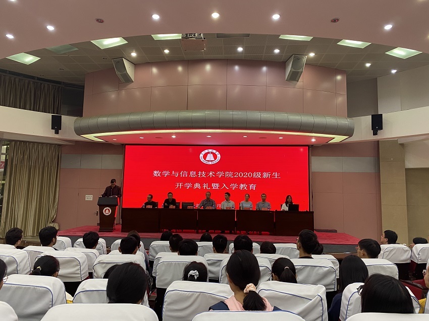 10月12日晚上7点,数学与信息技术学院2020级开学典礼在图书馆多元学术报告厅隆重举行。数学与信息技术学院党委书记张敏、院长安镇宙、党委副书记李德良、副院长李周红、数学系主任白丽艳、信息技术系主任于勇涛、辅导员詹婷、李勤珍以及2020级学业导师、班主任出席,全体新生参加,典礼由党委副书记李德良主持。