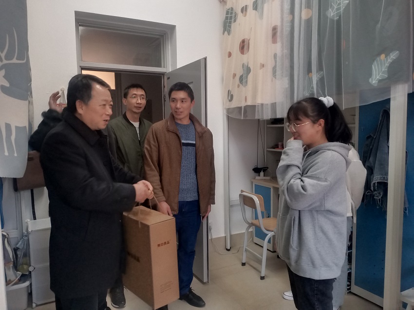 2020年12月15日晚,学校纪委书记李长虹在数学与信息技术学院相关领导、辅导员的陪同下前往学生宿舍M幢,看望了杨竹松和王小丽两名同学,亲切关爱两位学生的生活及学习情况,为她们送去冬季保暖慰问品,表达了学校党委、行政对家庭困难学生的关心关怀。