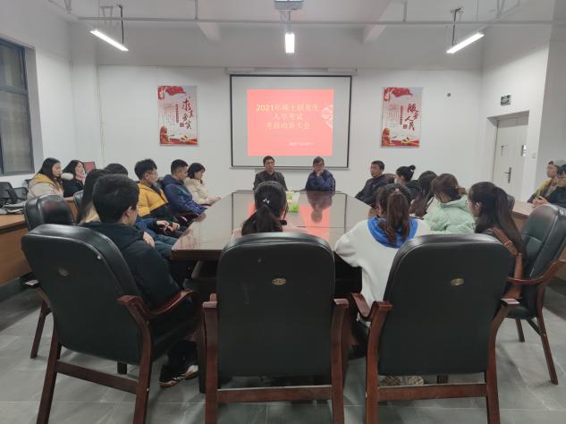 数学与信息技术学院于2020年12月21日星期一下午19:30,开展了“2021年硕士研究生入学考试前动员大会”活动。数信学院党委书记张敏、党委副书记李德良、辅导员闻强林和李勤珍以及我院参加2021年考研的所有同学参与了此次活动。