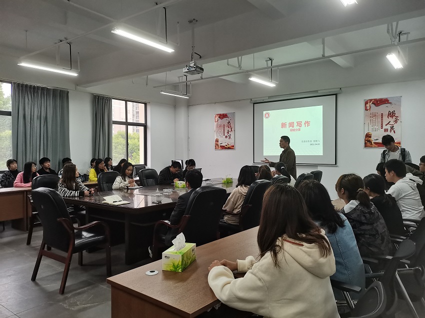 为了进一步加强学院的宣传工作,提高我院学生和学院宣传工作人员的理论素养和业务能力,2021年4月6日下午,我院在A-301会议室举办了新闻宣传工作专题讲座,邀请了党委宣传部廖鹏飞老师主讲,由院党委书记张敏主持,学院团学干部及宣传干事、各班级宣传委员、学院宣传工作人员聆听了讲座。