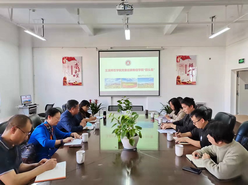 2021年11月2日下午,数信学院在实训大楼A栋3楼召开了巡察工作会议,学校党委第三巡察组彭松、李丽、杨丽萍、蔡咏明,数信学院党政领导参加会议。