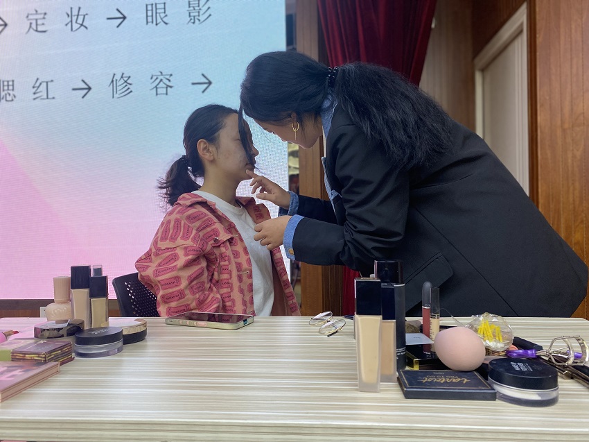 讲座开始,张老师用生动的讲解和典型的案例告诉学生:掌握形象礼仪文化的重要性,在穿着服饰上再进行巧妙搭配,可以让学生面对职场变得更加自信。张曦文老师针对即将毕业的学生,将大学生职场形象礼仪文化和艺术相结合,从“美好的第一印象”切入主题,围绕服装搭配、面试妆容、行礼等多方面进行阐述。