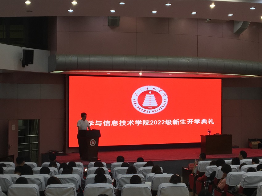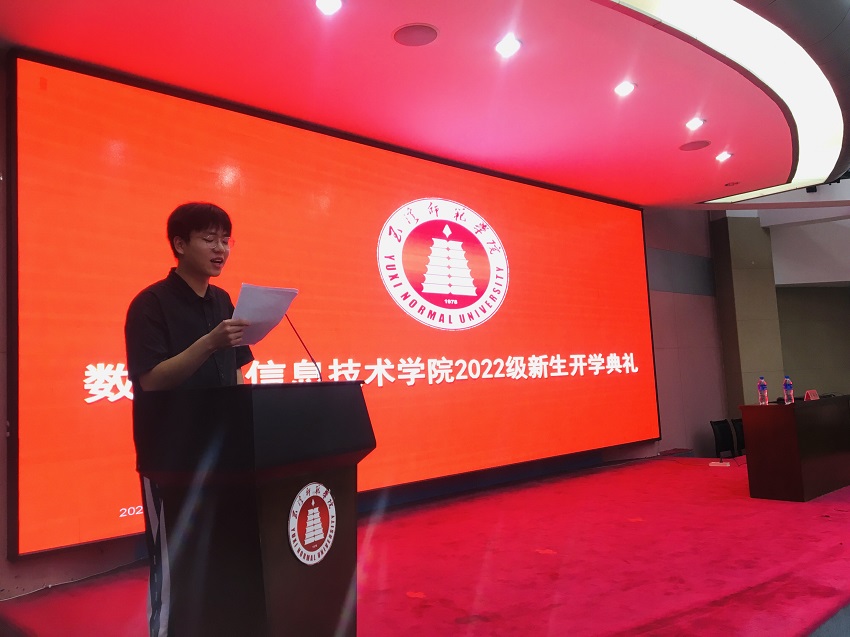 2022年9月21日晚上,数学与信息技术学院2022级新生开学典礼在图书馆多元学术厅举行, 2022级240名新同学和86名大类招生分流到数信学院的2021级同学带着师长和亲友的美好祝福加入数信大家庭,开启玉师新征程。
