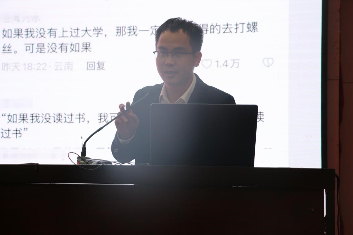 最后,学院党委书记张敏作总结发言,他强调“打铁还需自身硬”,在严峻的就业压力下,各位同学要不断提高自身素质,希望各位同学能够成为“有理想、敢担当、能吃苦、肯奋斗”的新时代好青年。