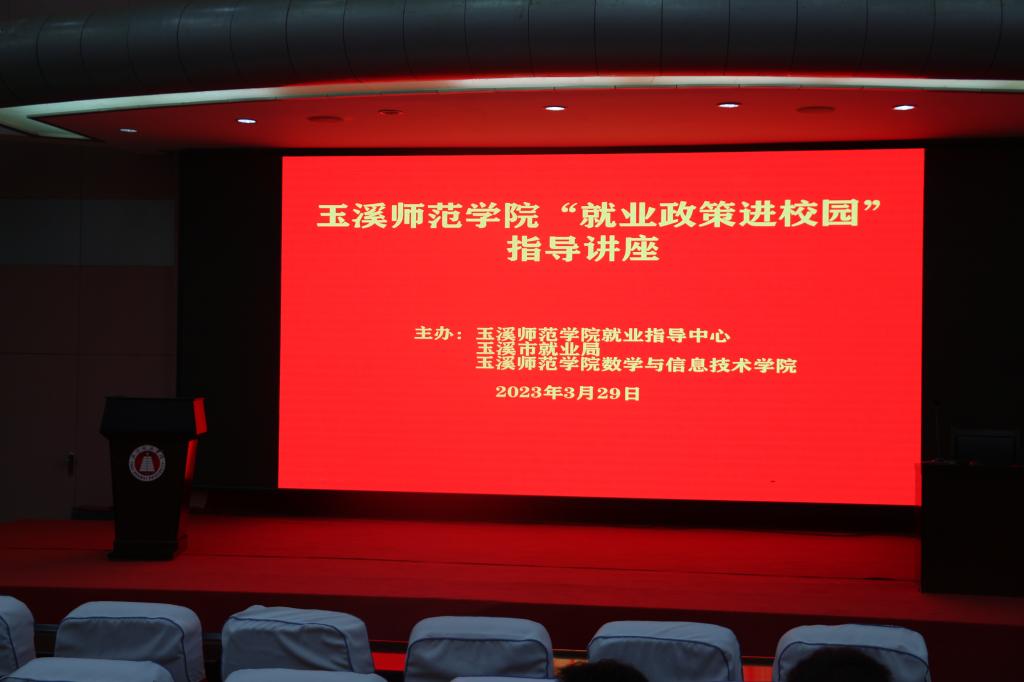 3月29日晚上,由玉溪师范学院就业指导中心、玉溪市就业局、数学与信息技术学院联合举办的“就业政策进校园”指导讲座在图书馆学术报告厅举行。数学与信息技术学院2023届和2024届学生聆听了讲座。