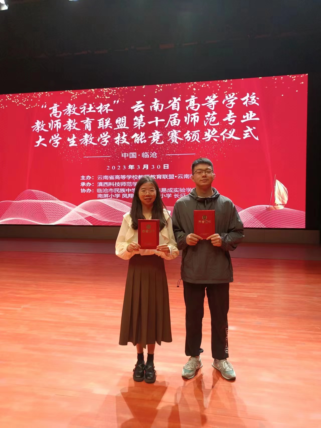 2023年“高教社杯”云南省高等学校教师教育联盟第十届师范专业大学生教学技能竞赛于3月在滇西科技师范学院举行,本次大赛由云南省高等学校教师教育联盟主办,滇西科技师范学院承办,大赛分为语文、数学和英语3个学科。数学与信息技术学院高度重视本次比赛,成立了由教学经验丰富的教师组成的指导小组,积极组织备赛。经严格选拔,共选出4名2019级数学与应用数学专业的同学参加本次比赛。