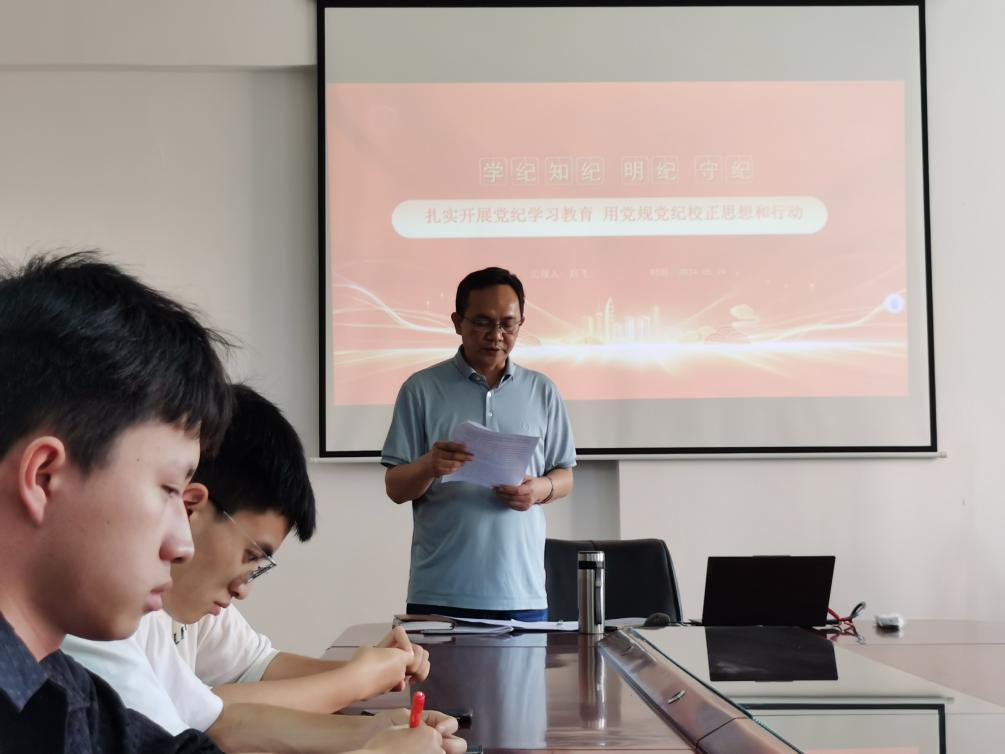 按照学院党委对党纪学习教育的计划安排,数理学院于2024年5月24日下午组织全体学生党员和发展对象在实训大楼B101会议室开展党纪学习教育专题党课。本次党课由学院党委书记刘飞同志进行授课。