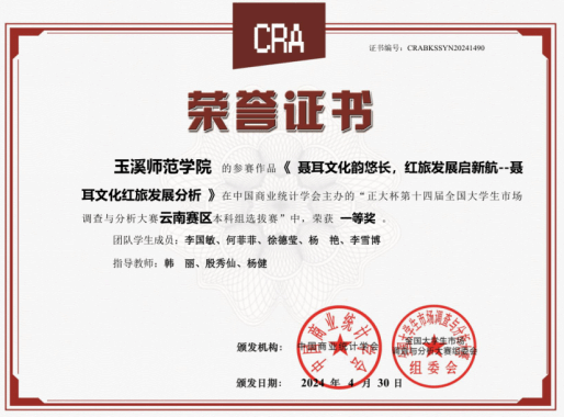 全国大学生市场调查与分析大赛作为国内一流的全国性大赛,已经连续六年纳入《全国普通高校学科竞赛榜单》。玉溪师范学院在第十四届全国大学生市场调查与分析大赛中取得了优秀的成绩,展示了学校培养高素质人才的实力与成果。