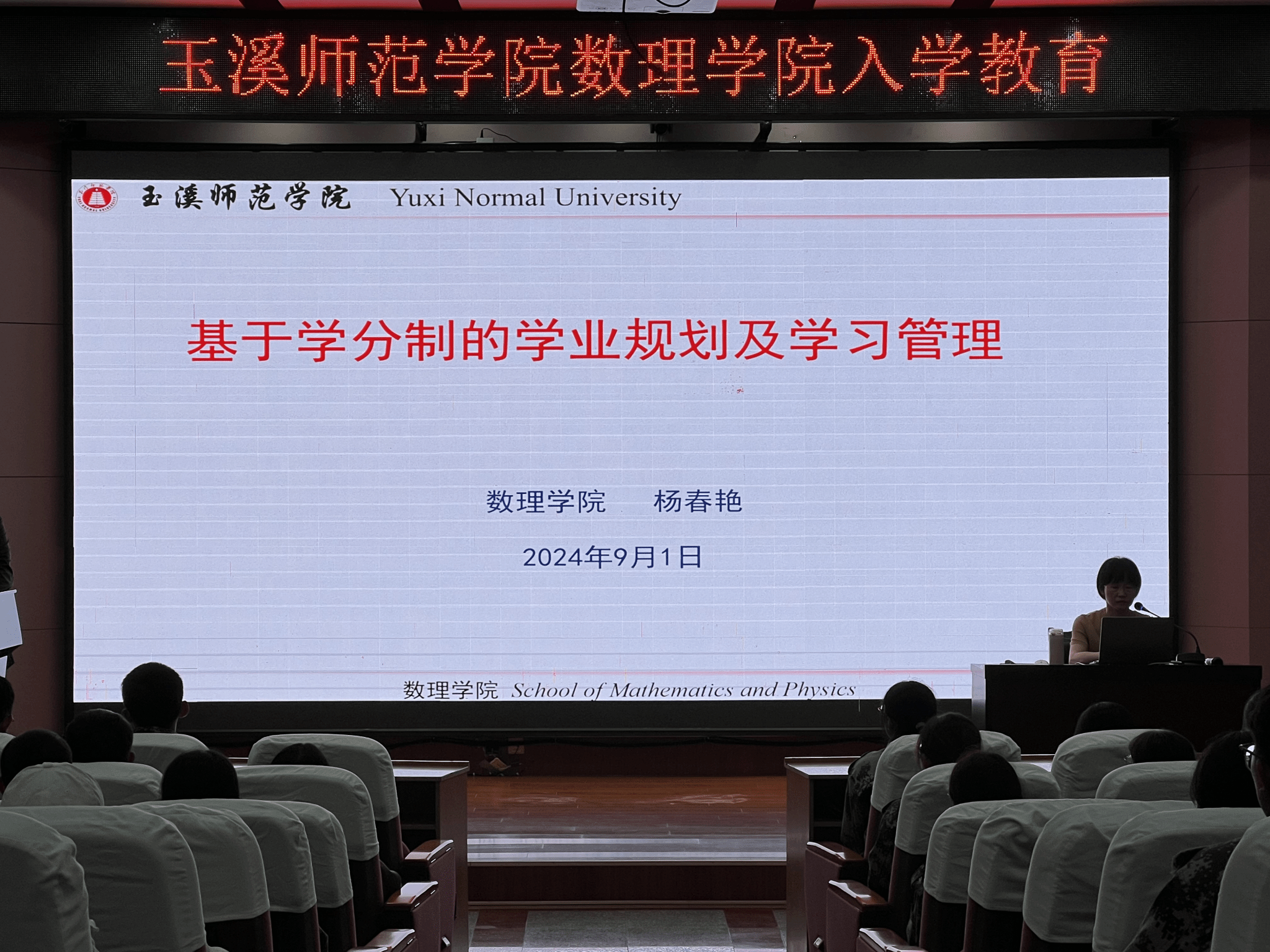 为帮助新生尽快了解学校教学规章制度,明确未来学习目标和生涯规划,9月1日晚,数理学院2024级新生学业规划及学习管理教育大会在科学讲坛举行。学院副院长杨春艳,辅导员何永进、王双玲及全体2024级新生参加会议。会议由杨春艳副院长主讲,何永进老师主持。