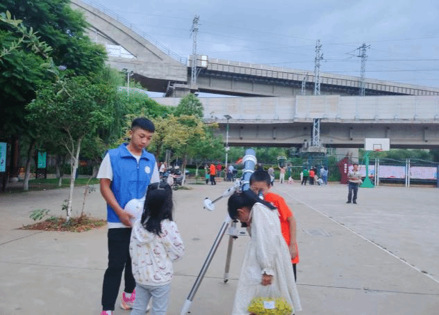 8月21日至24日,科普团队又前往曲靖市会泽县待补镇,深入待补镇的各社区,向社区居民分发普法宣传手册,并与当地青少年进行了深入交流。团队成员借助天文望远镜为当地的小朋友们讲解天文知识,带领他们一起开展天文观测,让他们通过天文望眼镜直观感受天文科学的魅力。