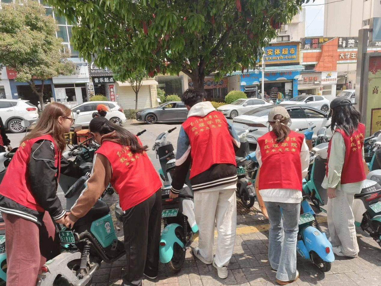 理论学习之外,同学们还以实际行动践行雷锋精神,让崇高信念落地生根。3月22日数理学院组织开展了“整理共享单车,清洁校边街道”志愿活动。活动以服务社会,奉献社会为宗旨,号召同学们从身边小善做起,弘扬雷锋精神,致敬志愿先锋。志愿者们对乱停放的共享单车进行整理,使车辆之间井然有序,同时对街道上的垃圾进行打扫与清洁。这不仅激起了同学们的奉献精神,更弘扬雷锋精神从小事做起,让雷锋精神在薪火相传中焕发新光彩。