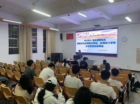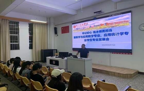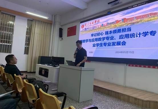 为贯彻落实习近平总书记关于做好高校毕业生就业工作的重要指示精神,进一步加强学风建设,鼓励学生考研深造。数理学院于2024年5月15日在14-103召开考研动员大会。出席本次动员会的人员包括数理学院院长李周红、教授刘云、班主任陈亦佳、殷秀仙以及2021级数学与应用数学、应用统计学全体学生。同时邀请了2020级优秀考研学子,分享他们的考研心得和备考经验。